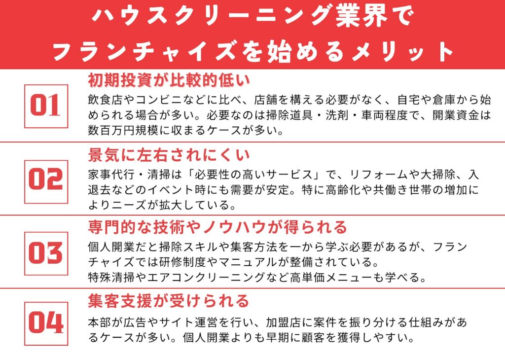 ハウスクリーニング業界のフランチャイズのメリット