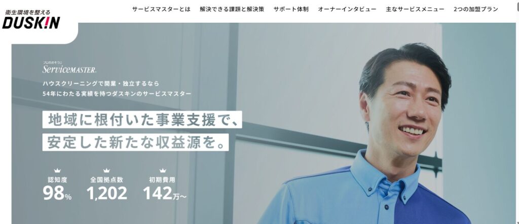 ダスキンサービスマスターは、1963年創業の実績を持つ清掃専門のフランチャイズ事業です。